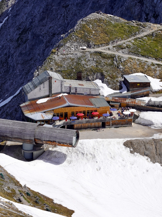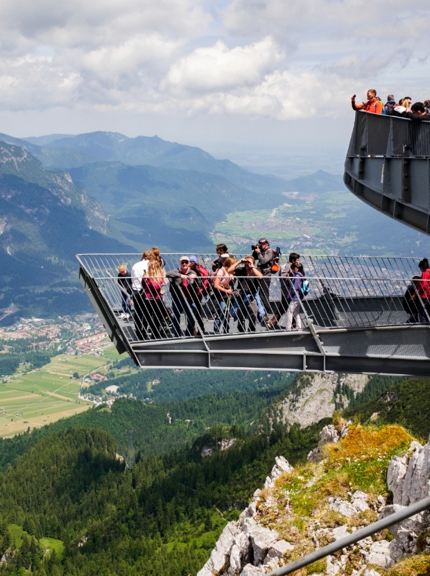 Das Alpspix beschert den Besucherinnen und Besuchern eine unvergleichliche Aussicht auf die umliegende Bergwelt. Die verglaste Front am Ende der 25 Meter langen Plattform eröffnet zudem den Blick in das tausend Meter tiefer liegende Höllental.